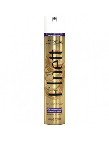 L'Oréal Paris Elnett Laca Anti Efecte Taronja 200 ml fixa el teu pentinat i neutralitza tons taronja en cabells rossos o grisos.