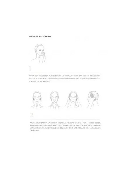 Versátil y multifunción, puede utilizarse como esencia diaria tras la loción, mezclarse con bases de maquillaje o tratamientos hidratantes para potenciar su efecto, o aplicarse en el cuerpo, uñas y cutículas para un extra de hidratación y luminosidad. Su uso continuado transforma la piel, revelando una tez más joven, suave y saludable.